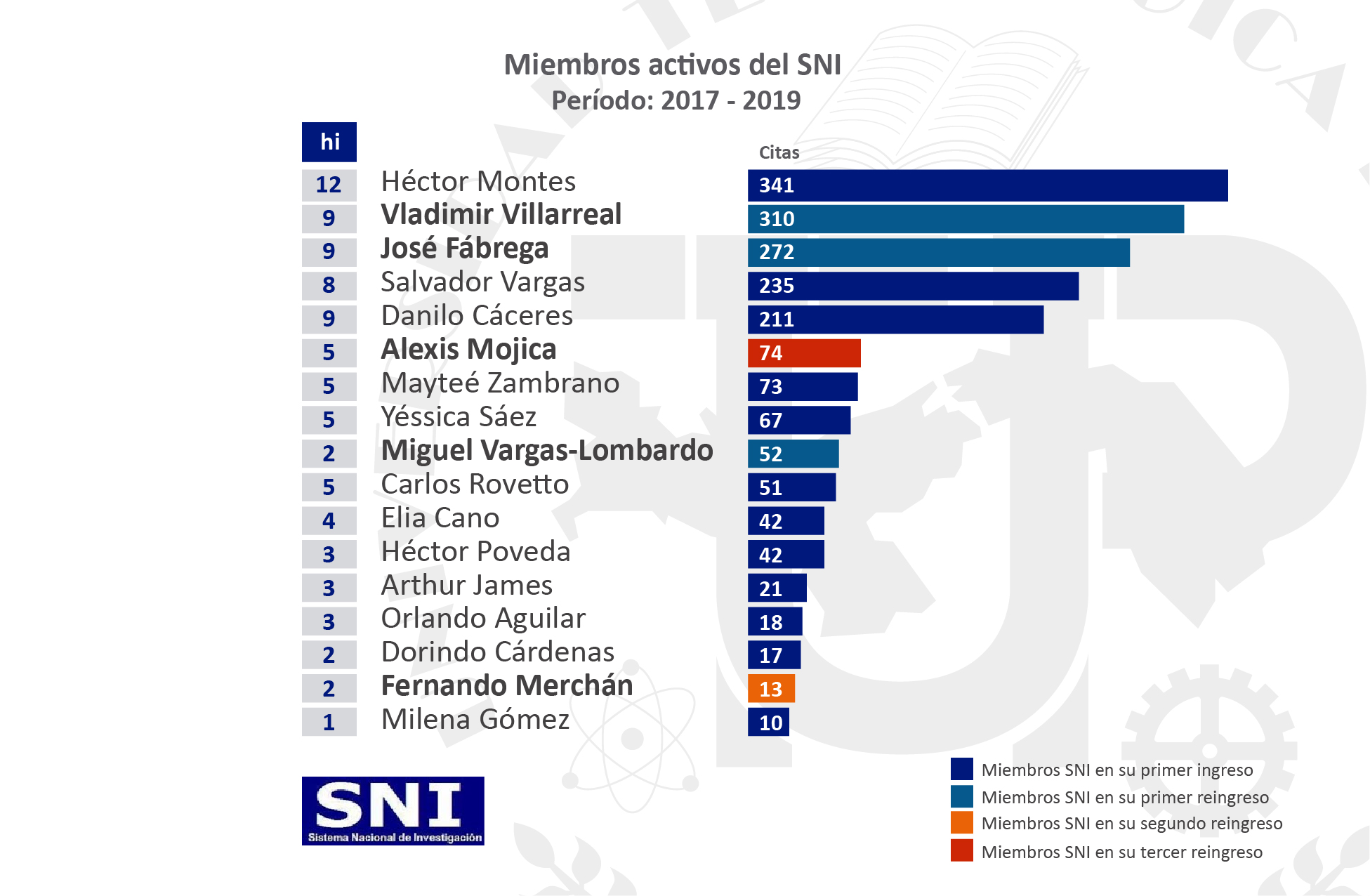Los perfiles se muestran por facultad, sede regional, el número de citaciones, el número de publicaciones y el valor de hindex.